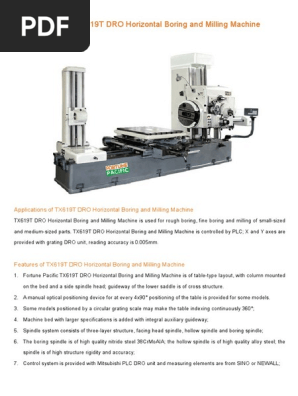 Dro Horizontal Boring And Milling Machine Tx619t Pdf Crafts Machines