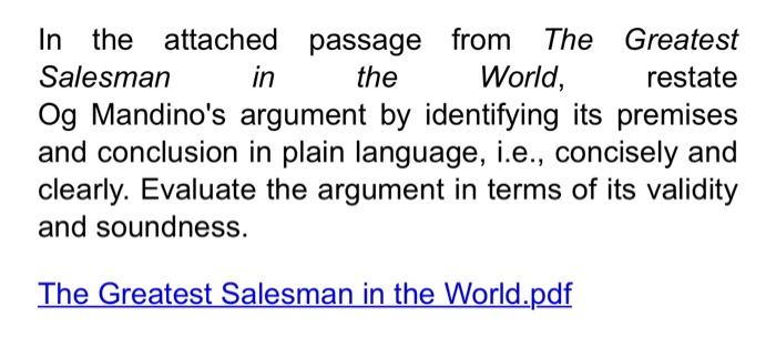 Solved In The Attached Passage From The Greatest Salesman In Chegg Com